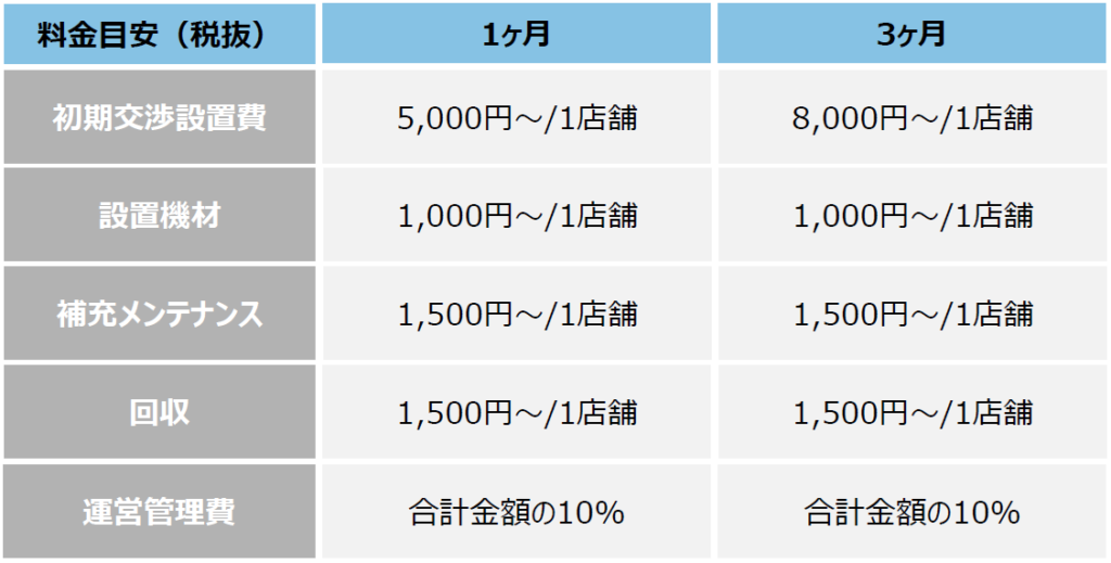 ※1ヶ月期間延長の場合は 2,000円/1店舗必要となります。